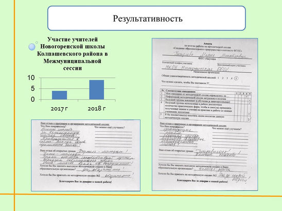 (Слайд 16) В прошлом учебном году из Новогоренской школы Колпашевского района на методическую сессию приехало 4 учителя, в этом году педагогический состав приехал полностью! Что говорит о практической полезной направленности.